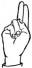 На ћирилици написано БЛАЖА УЊИЋ састоји се из 9 слова [?]. Исписано ћириличном једноручном азбуком за глувонеме: